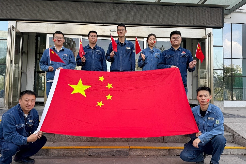 有一种颜色,叫“中国红”;有一种骄傲,是与国旗合影。当身影与国旗相融,当工装蓝与国旗红相映,每一张照片都是对祖国的礼赞,每一份定格都在诉说对这抹象征信仰与力量的中国红的无限崇敬。